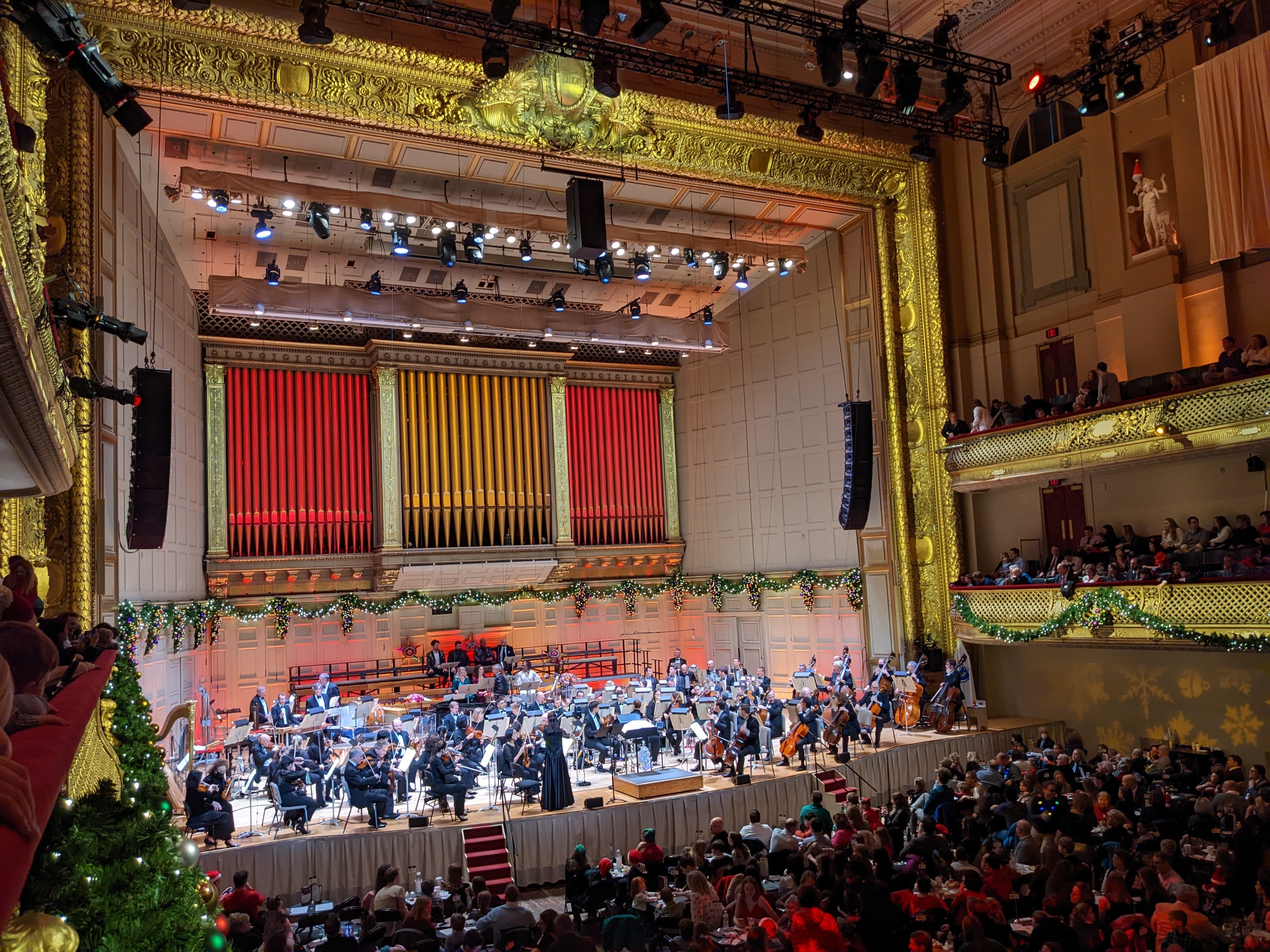 Holiday decorations are visible in Symphony Hall throughout the season. The whole undertaking is estimated to cost over $70,000, which shows just how much goes into making the Holiday Pops more than just a concert, but a special experience that holds a special place in Boston’s holiday traditions and brings families, friends, and music lovers together.