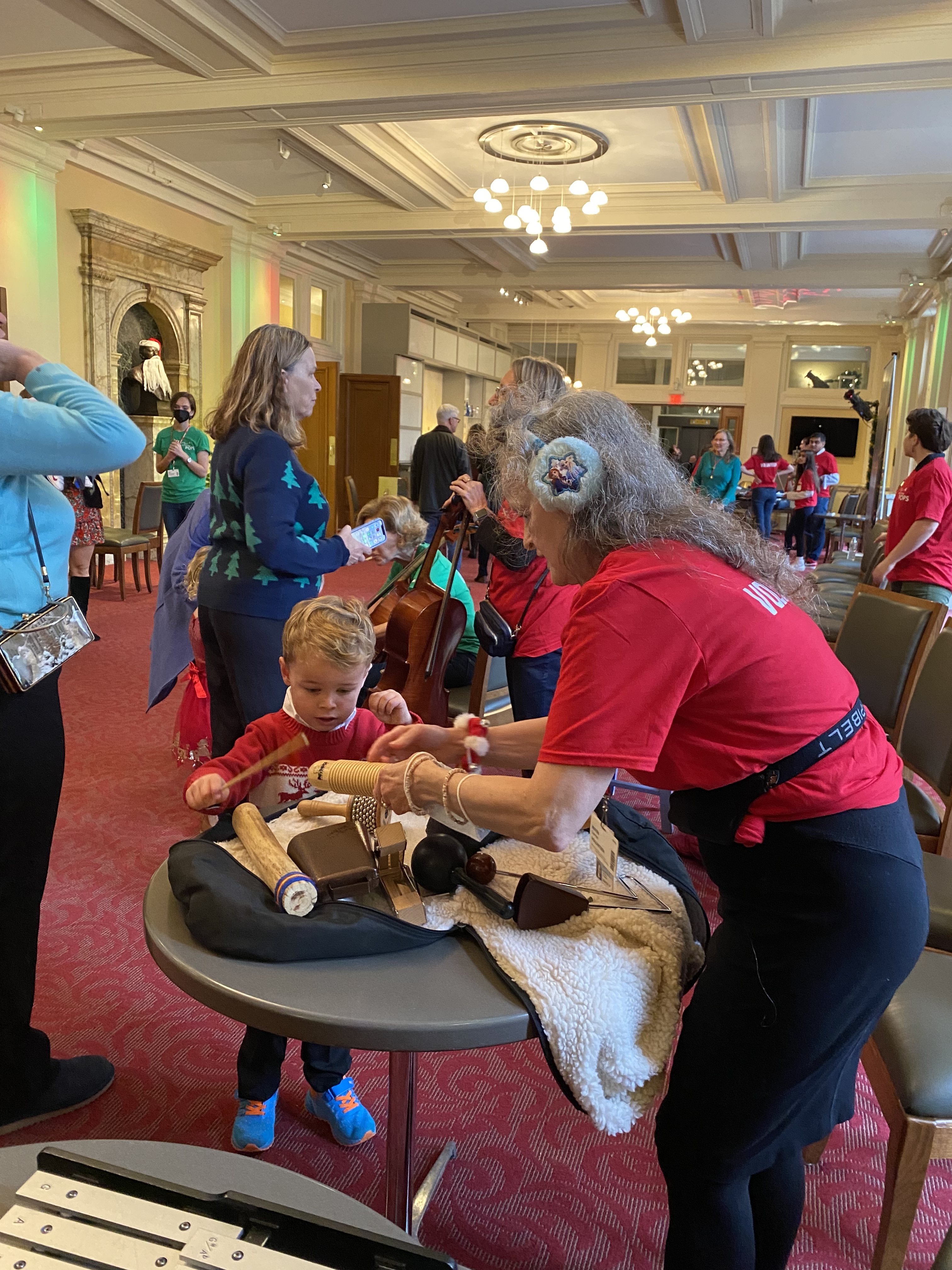 The Instrument Playgrounds have also returned, albeit without the wind instrument components of the choices. But adults and kids still enjoy trying out the string and percussion instruments with assistance from our volunteers. These are offered on Casual Fridays for adults, Family concerts, and any other special event at Symphony Hall such as open houses, etc.
