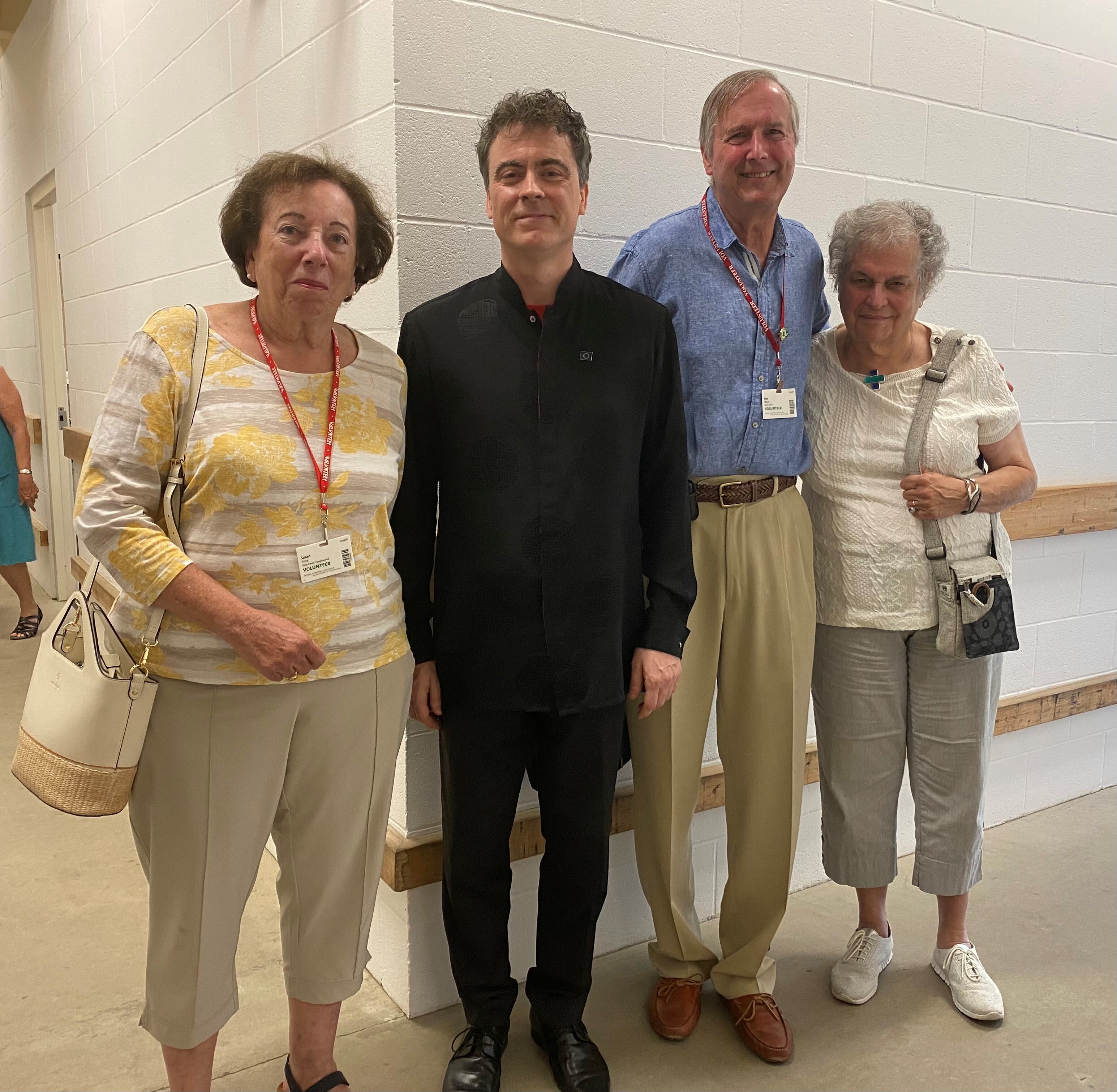 (Left to right) BSAV Vice-Chair Susan Price, pianist Paul Lewis, and BSAV Chair Bob Braun and his wife Carol backstage after the BSAV Named Concert.
