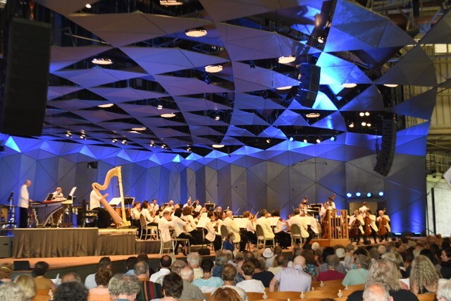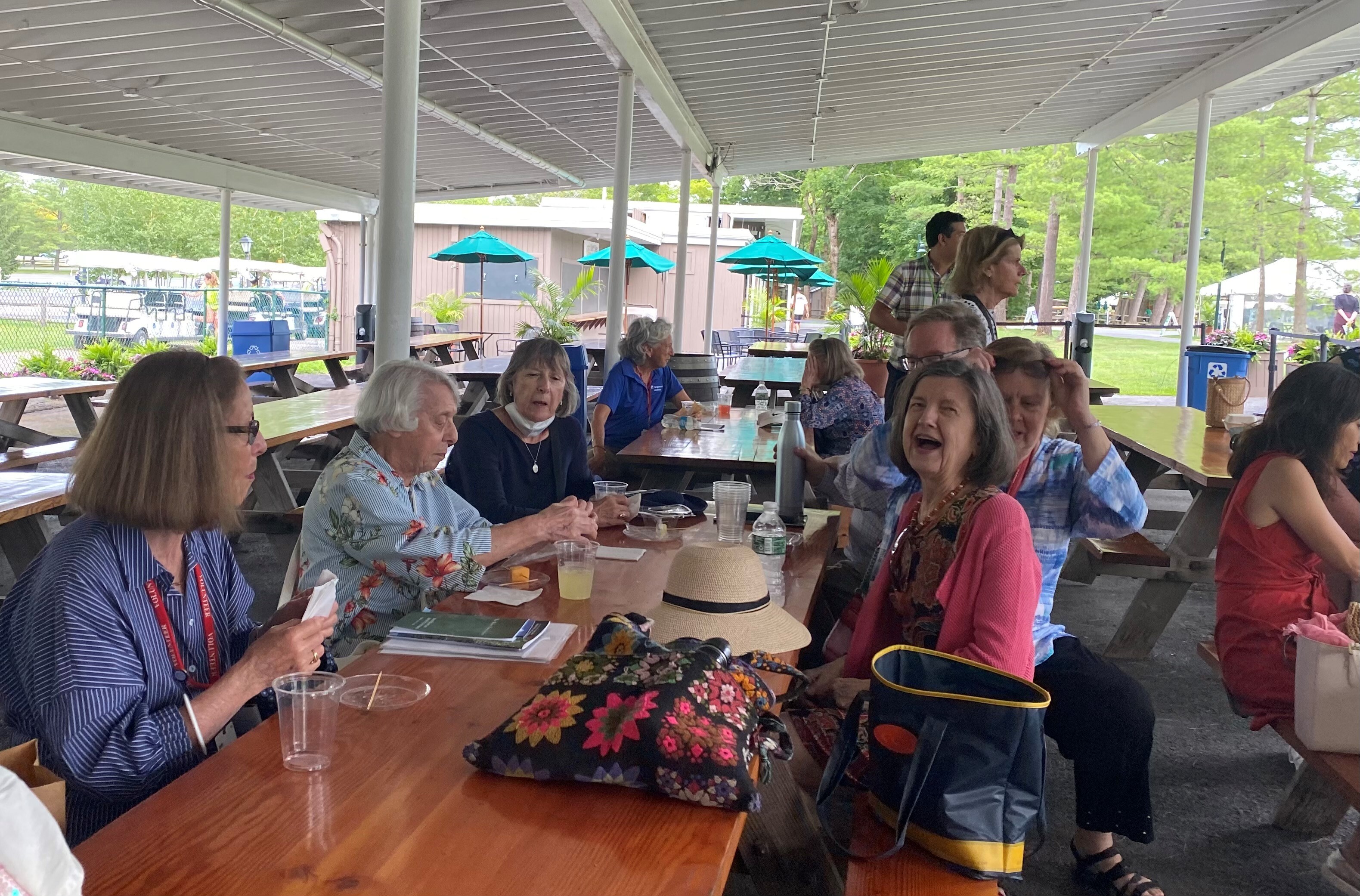 We arrived right on time at 11:30am and were warmly greeted by Erin Asbury and BSAV staff who handed out our tickets for the afternoon concert. We then headed for the Tent Club, where our pre-ordered luncheon awaited us. A shiver of joy and pride coursed through me as I walked across that beautiful campus. Already the “picnickers” were choosing shady spots to spread out their blankets and food outside the Shed.