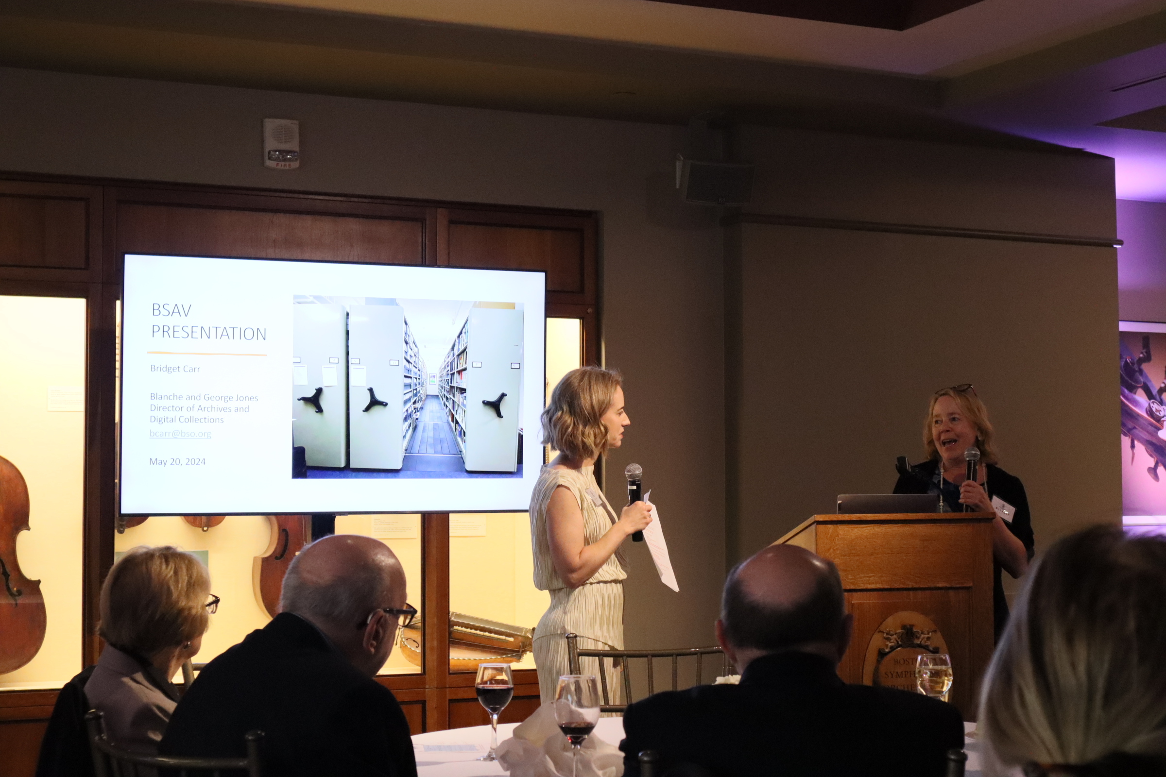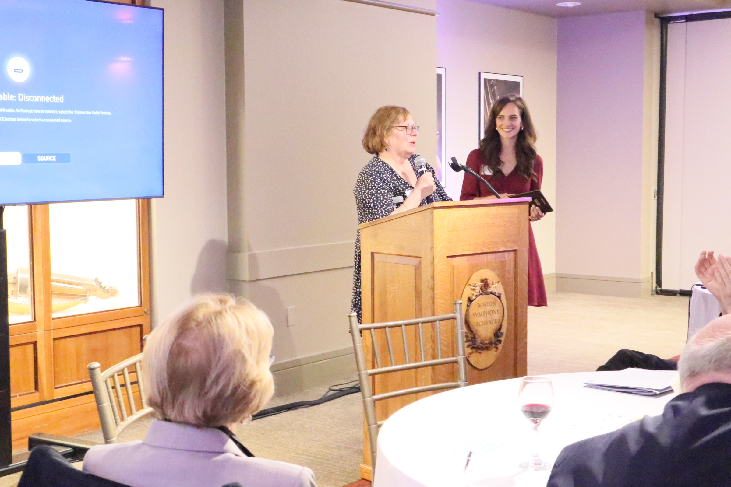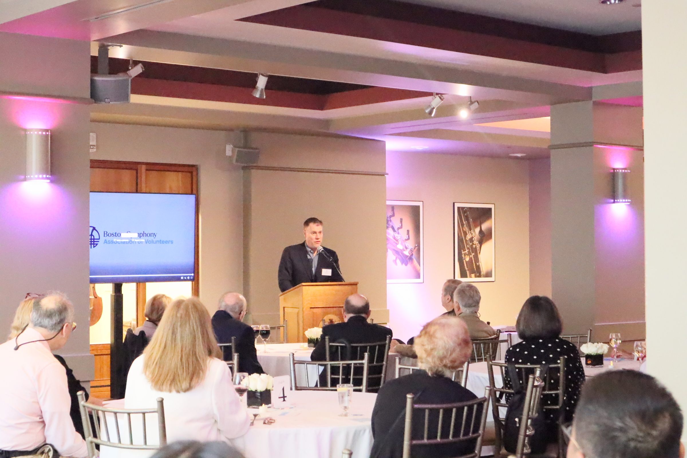 The recognition event got a bit of a facelift this year and felt more like a small gala! The set up of round tables mixed with cocktail tables made for easy mingling, and the program and presentations were broken up by taking breaks for dinner and dessert. I think we’ve landed on a new tradition! Chad Smith, President and Chief Executive Officer, joined us early on in the evening to give some remarks. It was the first time I myself had met him in person, and it was wonderful to hear a bit about his background as a student at NEC, and how he used to sneak into the hall to see concerts – he shared that he would put on his tux and pretend to be a waiter! It was also perfect timing that the new concertmaster was announced earlier that day. Coming from the LA Philharmonic, Chad knows Nathan very well, and had many wonderful insights to share regarding him as a musician and person. It is certainly an exciting time for the orchestra. It’s incredible to think that he is only the 4th concertmaster in the last 104 years.
