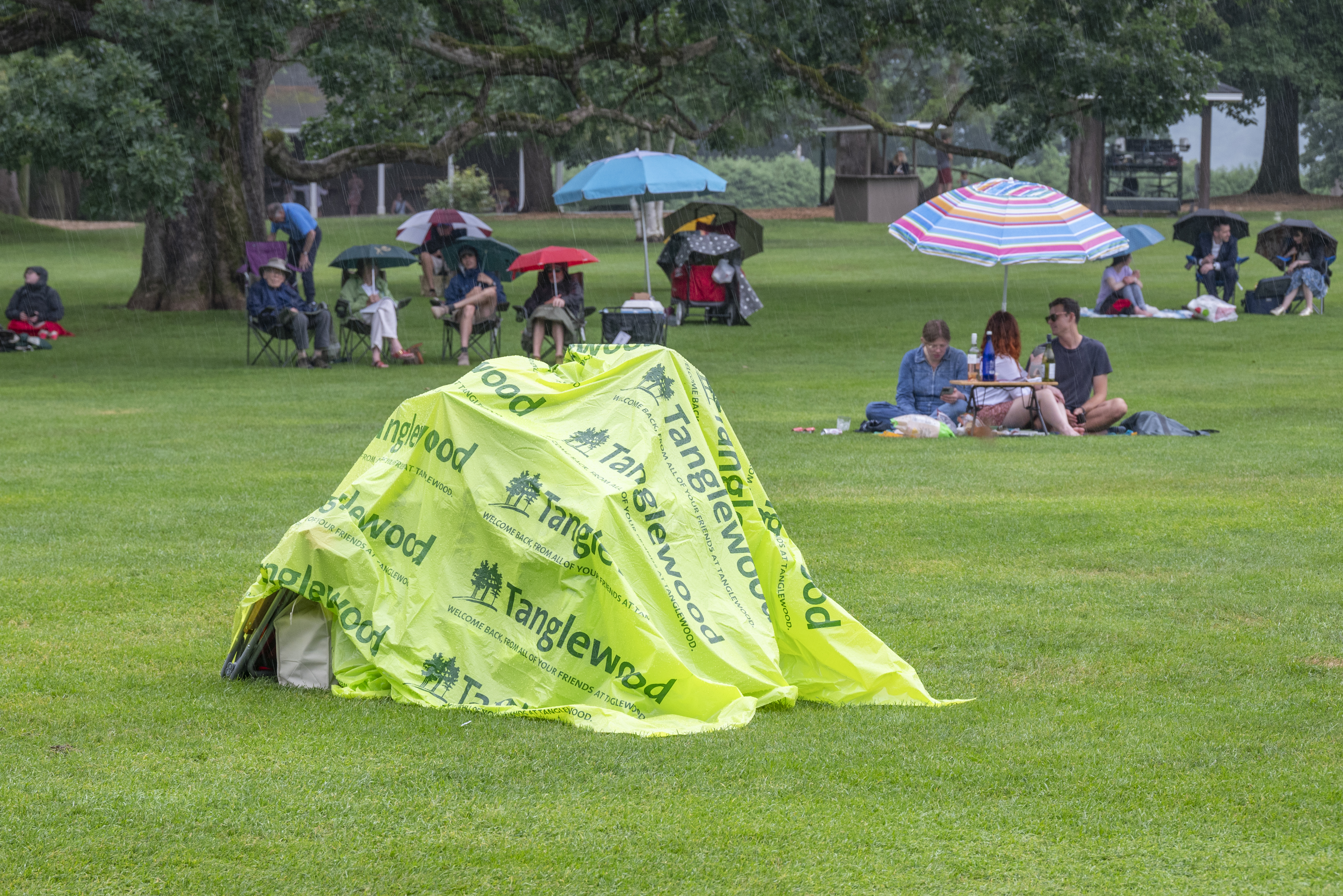 A Tanglewood tarp used as protection from the rain. Photo credit: David Seth Ross
