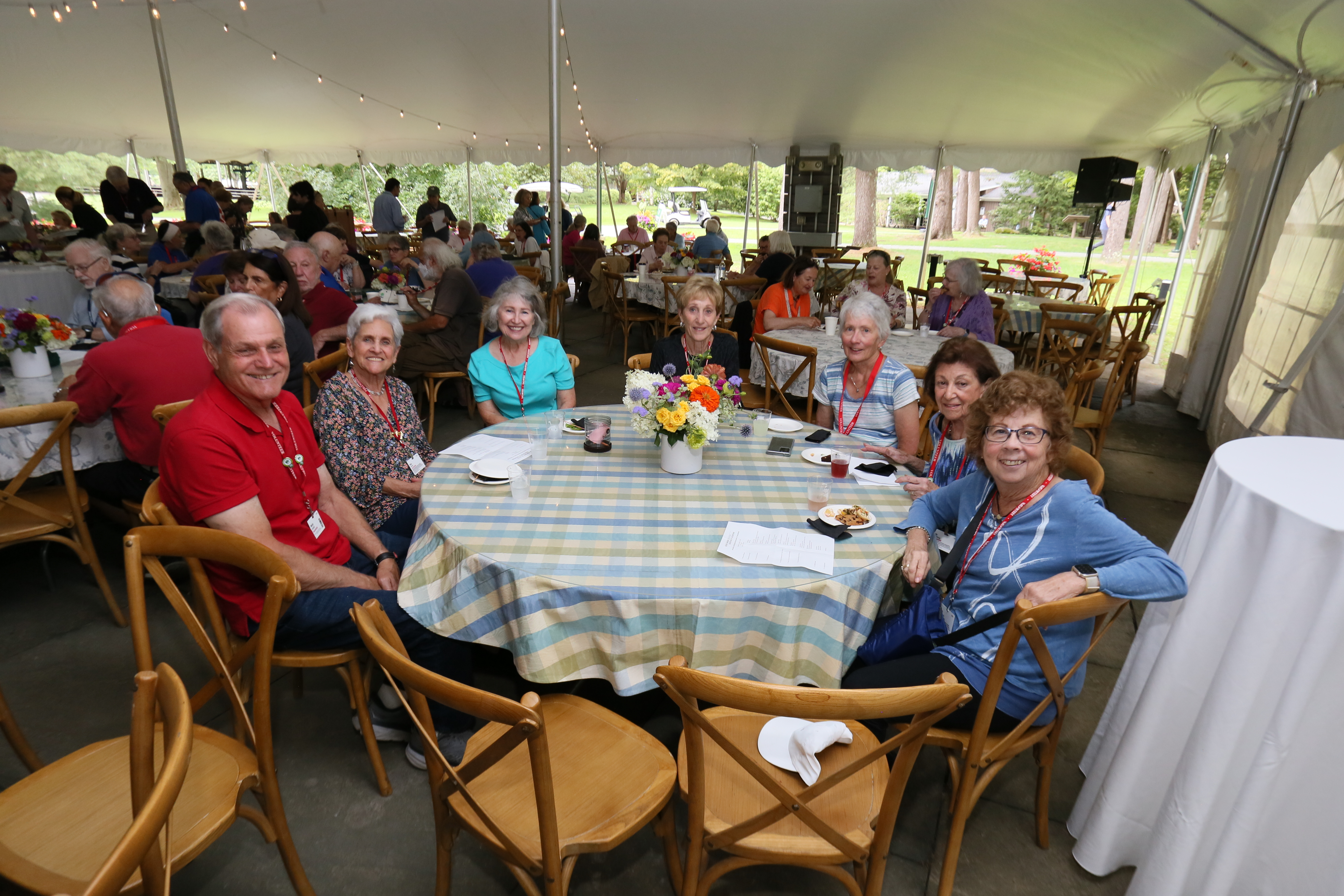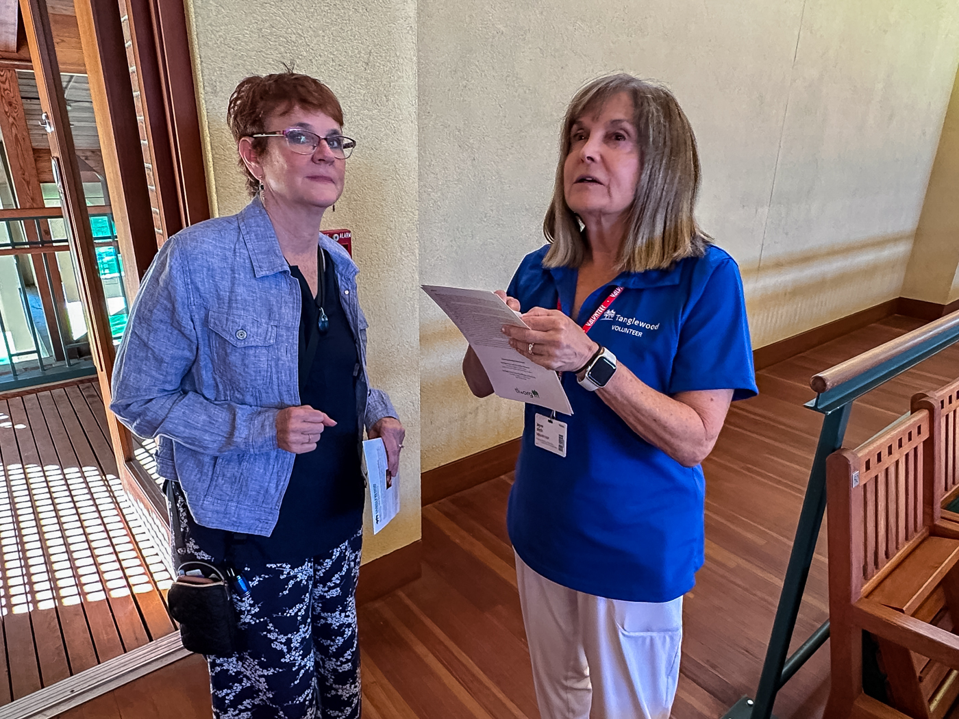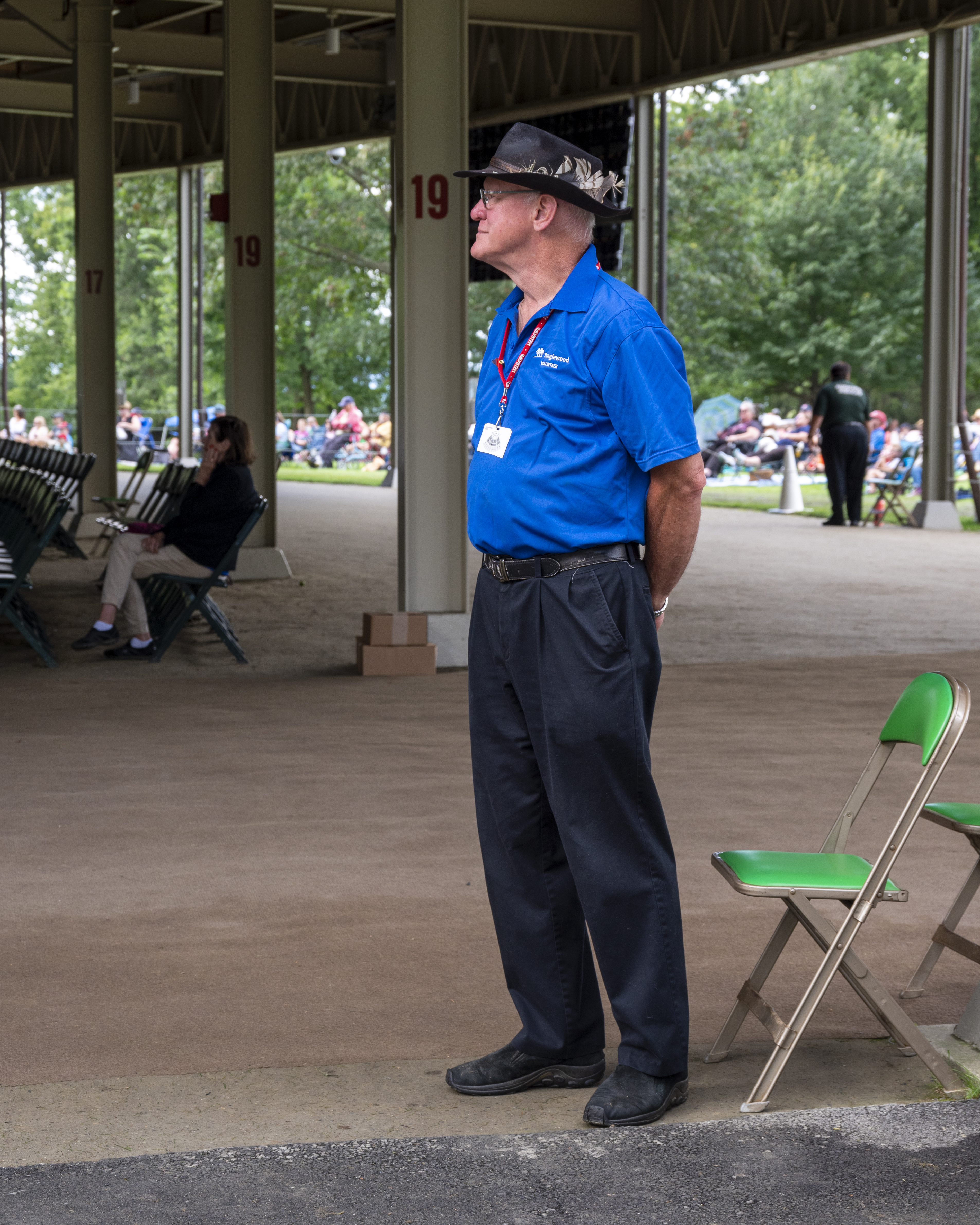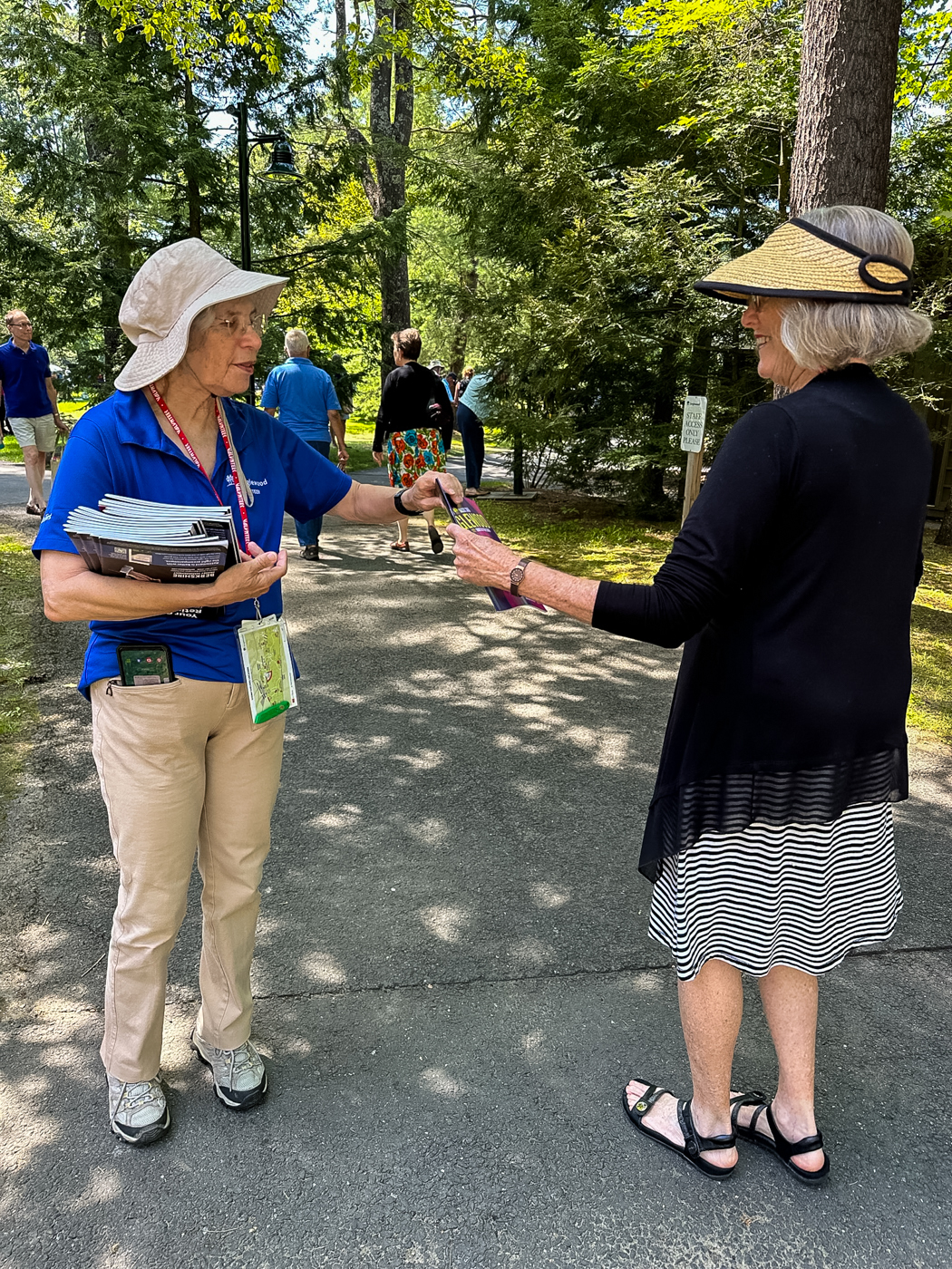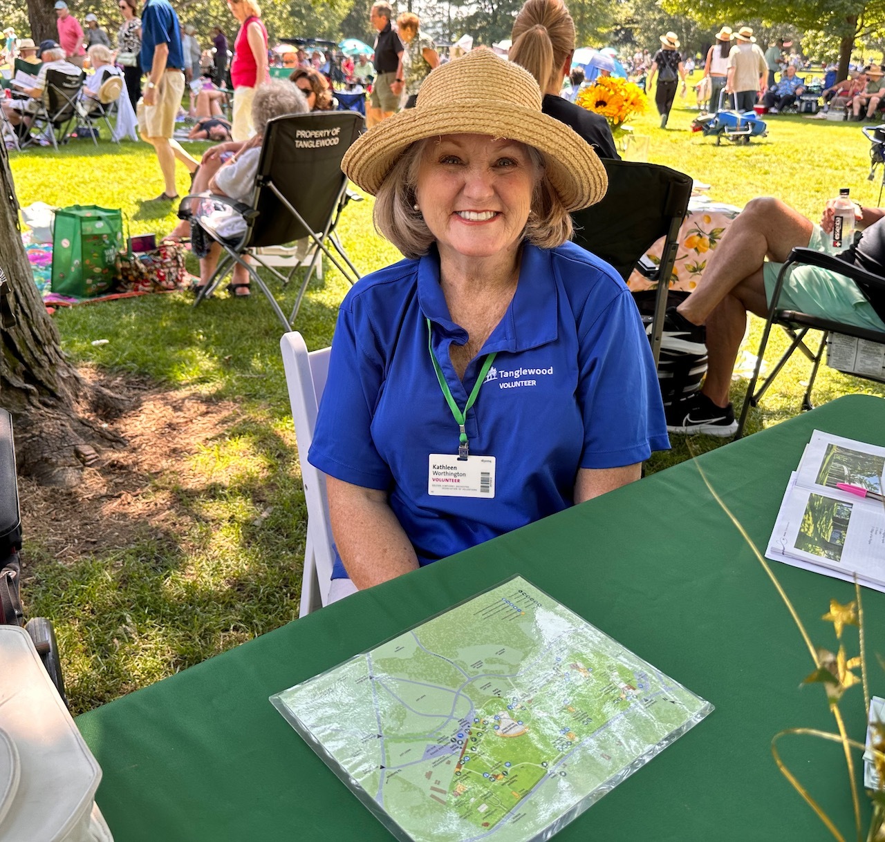 The summer of 2023 was marked by a busy slate of concerts; a total of 43 in the Shed and 49 in Ozawa Hall were assisted by our 299 ushers. 148 volunteers served as hosts this summer: 33 were parking lot hosts, 62 were information hosts, and the rest assisted with greeting patrons, wayfinding on the grounds, and with mobile ticketing. We had a crew of 62 volunteers who worked in the gift shops. 47 volunteers served as exhibit docents in the Visitor’s Center, and they were kept very busy as many visitors came to see the exhibits, which included the Tappan House history, popular artist concerts, women composers, and models of the original designs of the Shed and Ozawa Hall. We encourage all patrons of Tanglewood to stop in while they are on the grounds. Also, this summer, our 27 tour guides led 147 tours of the beautiful Tanglewood property. We had a total of 474 volunteers this summer; 59 were new volunteers (identifiable by their green lanyards).