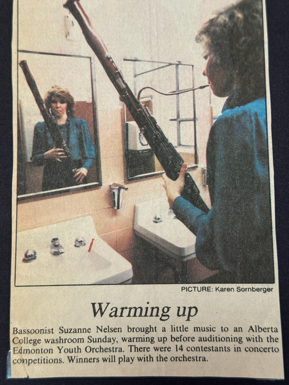 My second choice was trumpet. There was a trumpet professor at University of Alberta, and I asked if I could study with him. He said, “No, you look like a bassoon player.” At first, I was slightly taken aback—I had no idea what a bassoon was nor what a bassoon player “looked like.” But thank goodness he said that, because I fell in love with bassoon right away. I just thought it was really weird looking, and it's a low voice.